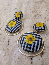 Très belle paire de boucles d'oreilles avec boutons d'or résinés