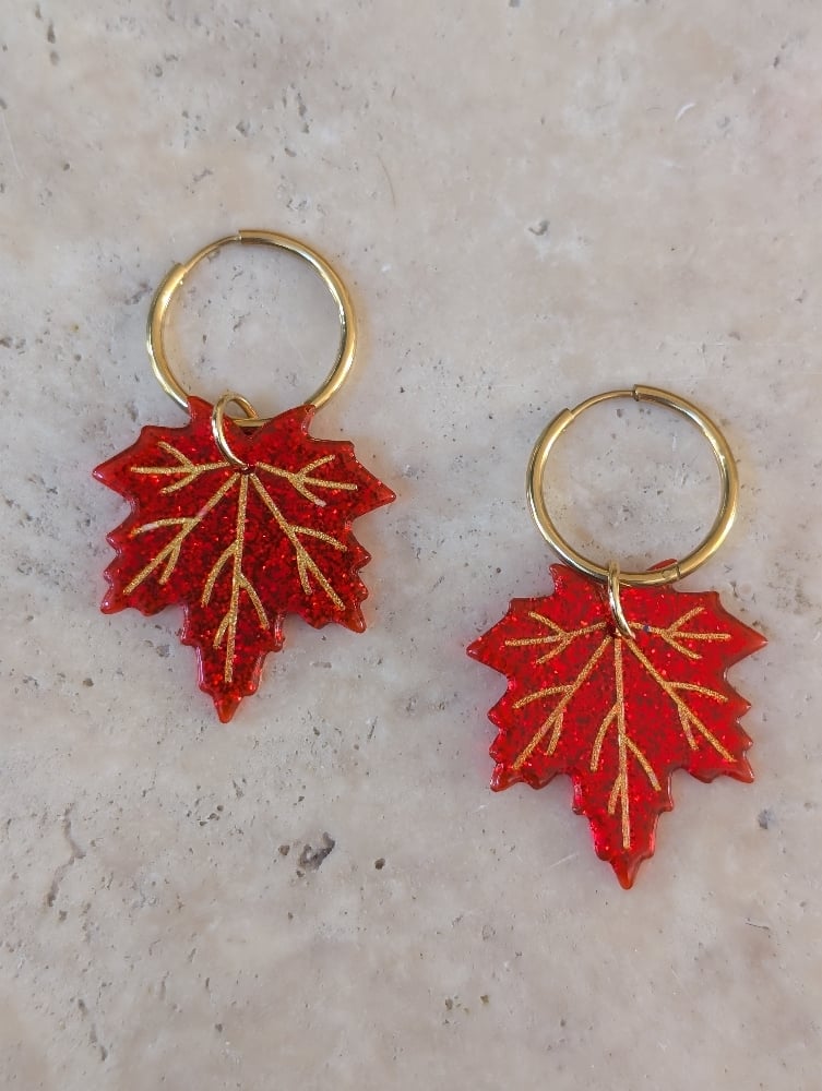 Grands feuilles d'automne 3.5 cm de diamètre en résine époxy à paillettes