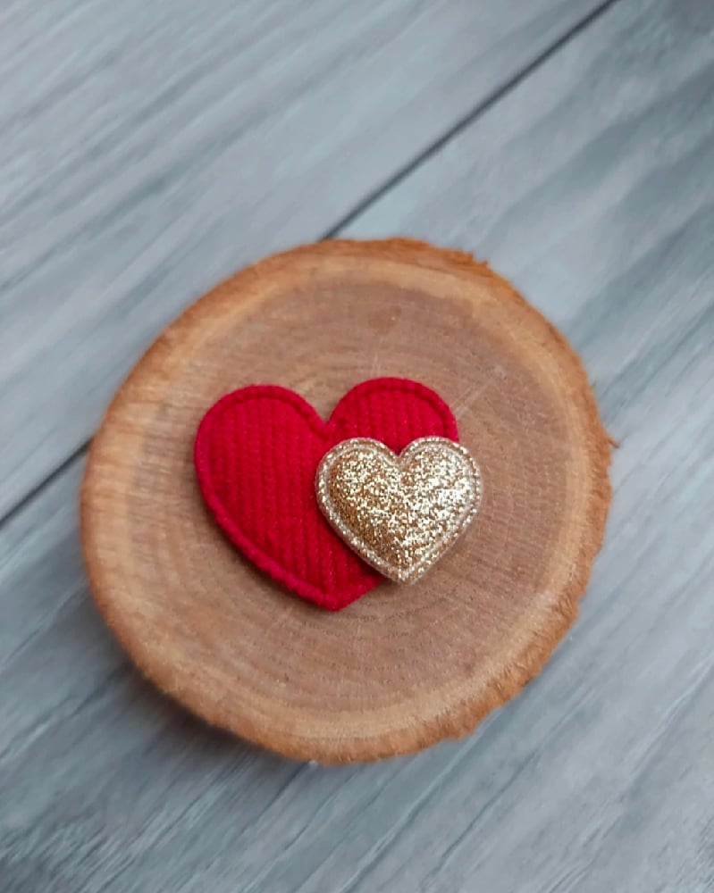 Adorable broche coeur velours et petit coeur dore